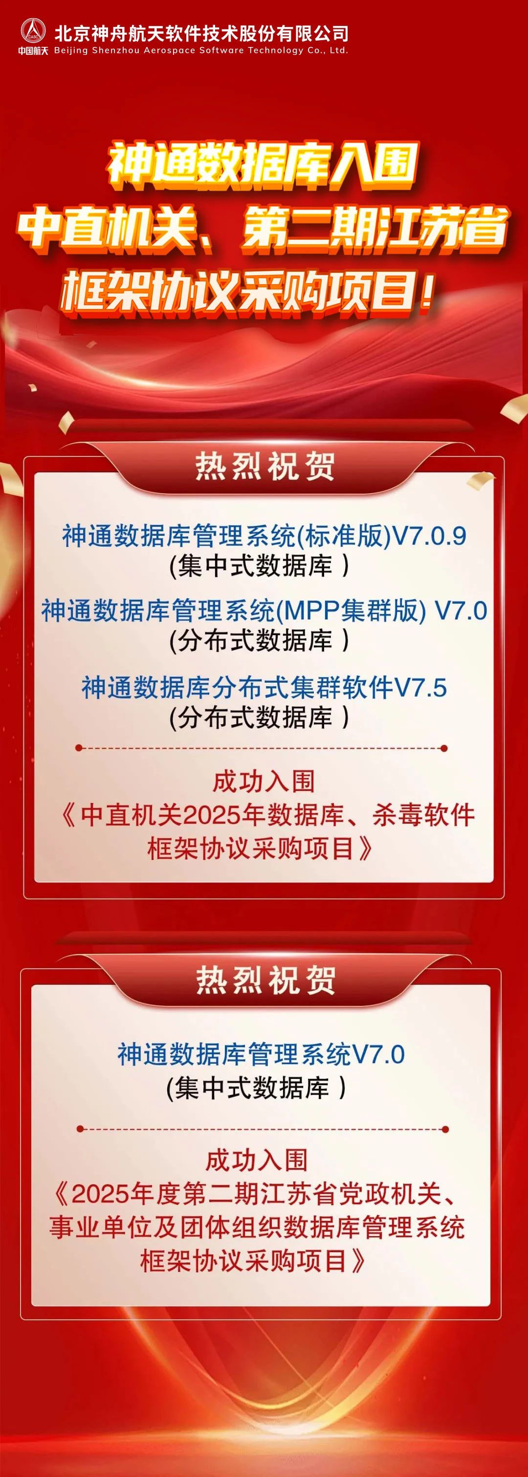 神通數據庫入圍中直機關、第二期江蘇省框架協議采購項目!