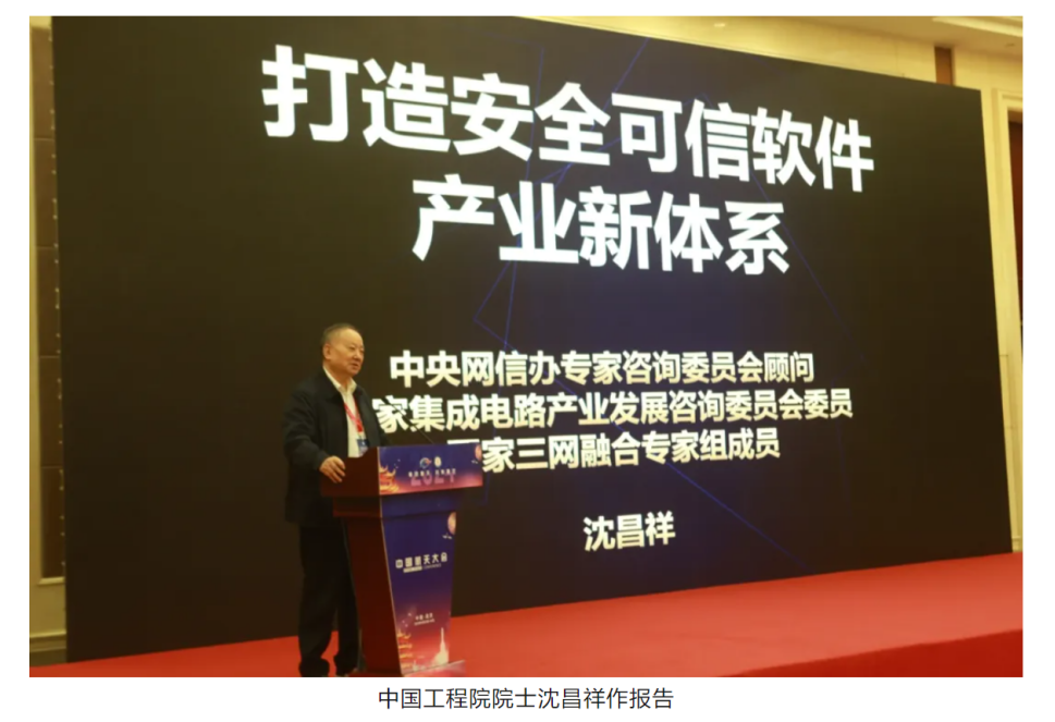 在大會報告環節,沈昌祥院士作題為《打造安全可信軟件產業體系》的報告。提出了智能時代網絡安全面臨的嚴重威脅,指出了打造自主創新、安全可信的網絡安全產業的技術路徑。