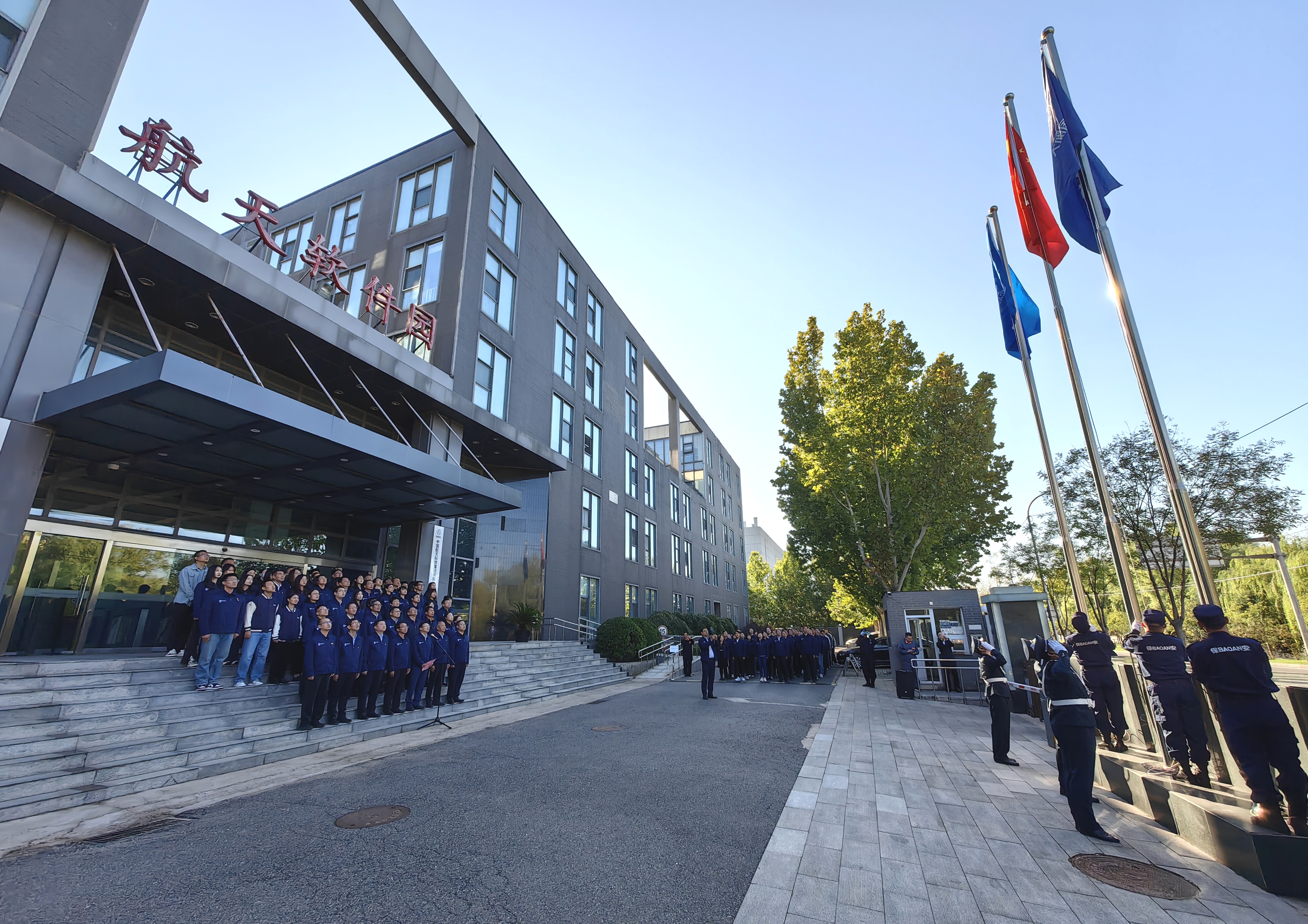 10月8日,為慶祝中華人民共和國(guó)成立75周年,神軟公司本部及神軟子公司神通公司、四創(chuàng)公司全體干部員工在航天軟件園隆重舉行了升旗儀式。公司總經(jīng)理劉志華主持儀式。