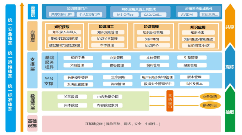 多級別的知識組織: 支持詞表庫、索引庫、知識條目庫、專家庫、領域知識庫、流程知識庫和個人知識庫等多級別知識組織;